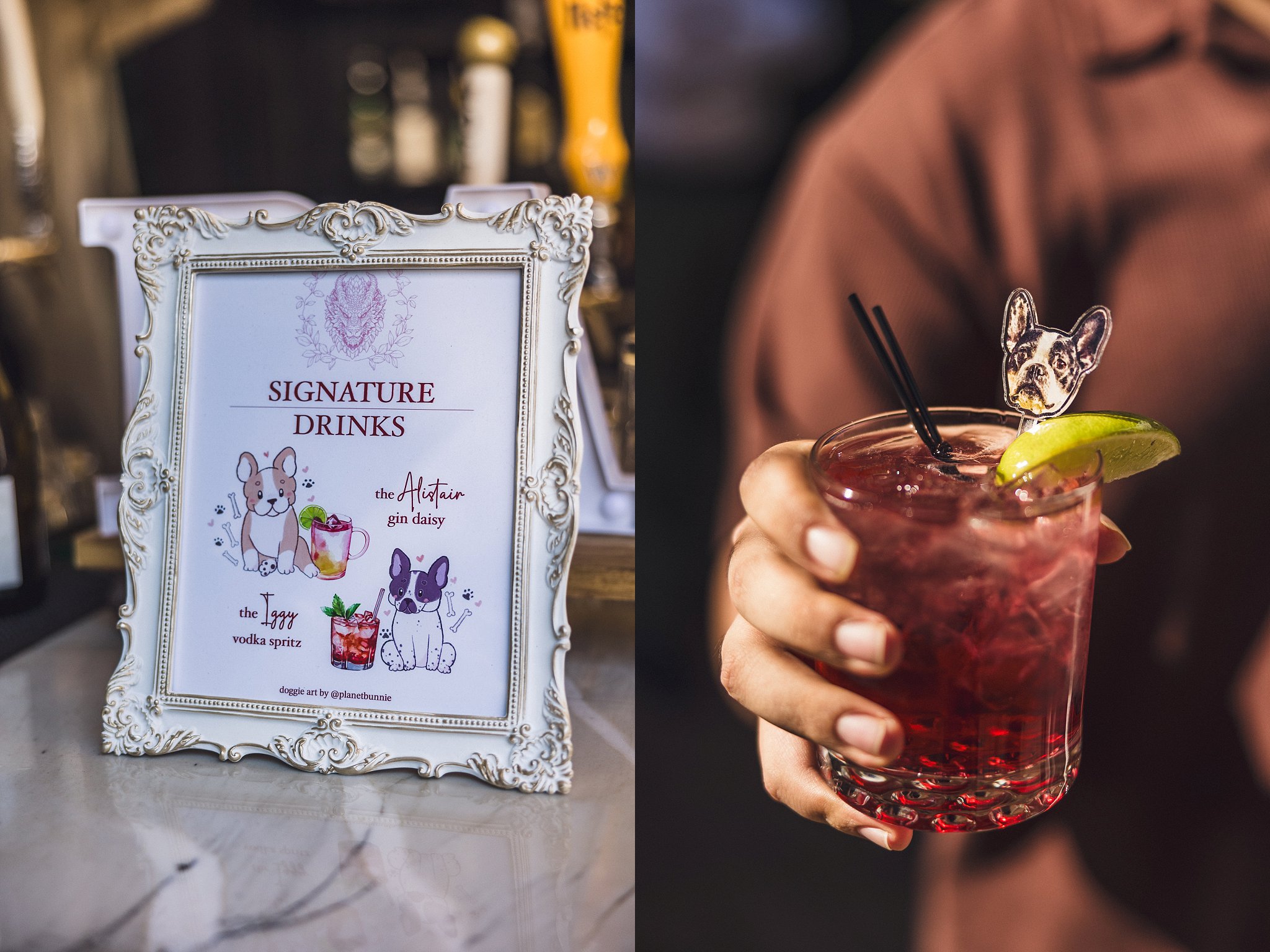 - Name custom cocktails after your dogs.