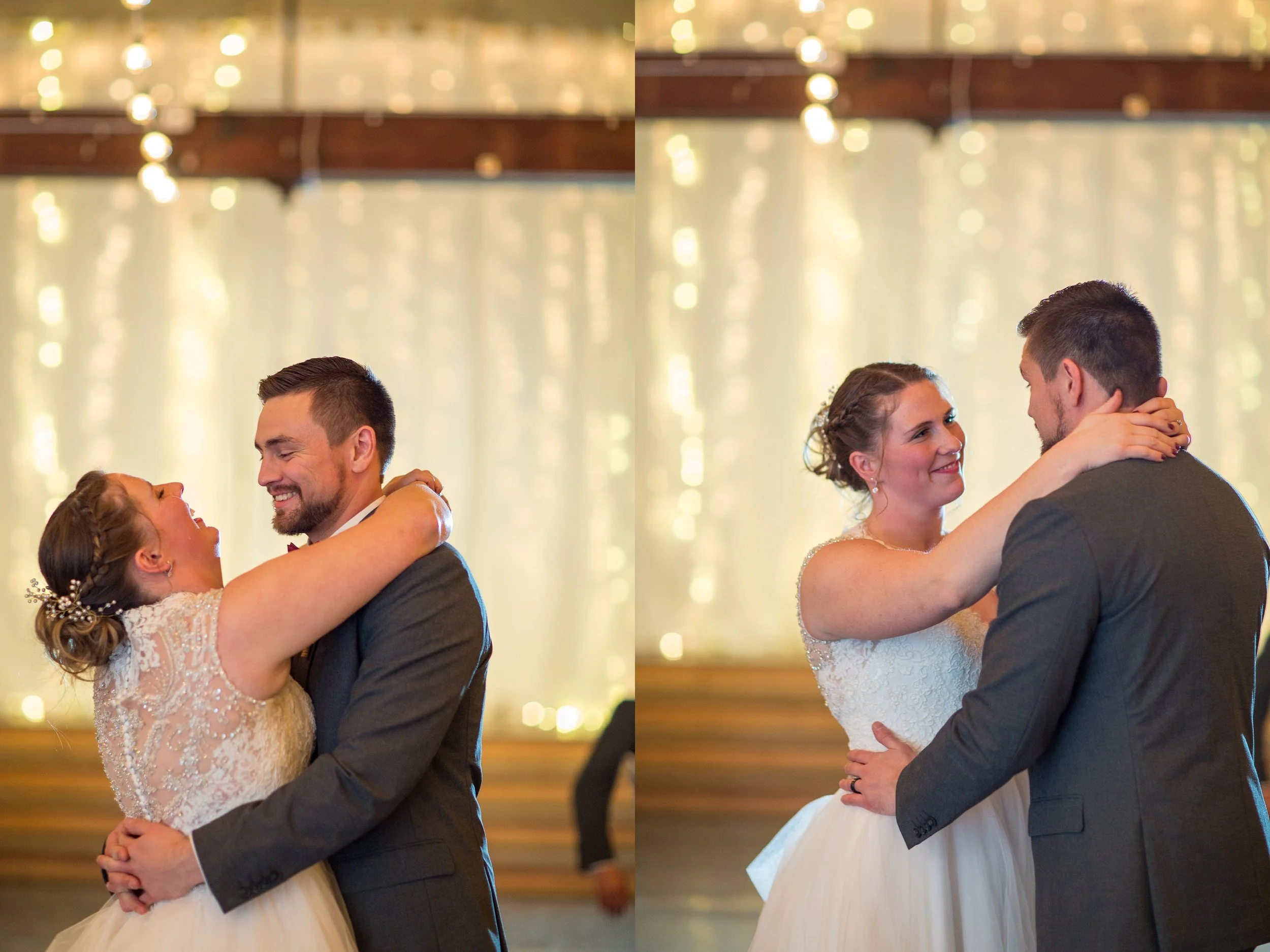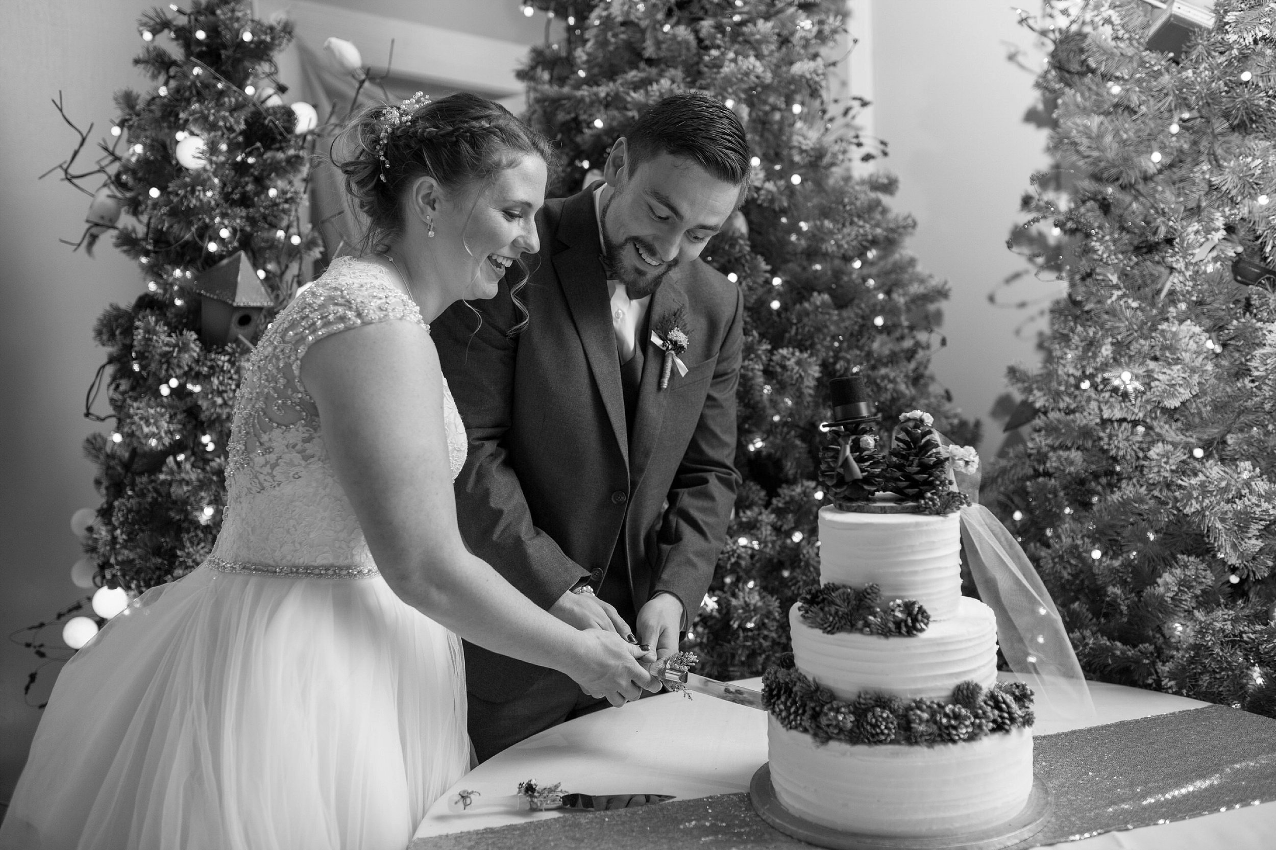 I knew these two’s wedding at Green Villa Barn would be a blast. I knew because they are a blast. We had a blast at their engagement session in the snow in the spring. And despite their festive December wedding not featuring any snow, their wedding did featured neon light up shoes, a bow tie wearing guinea pig ring bearer, breakfast for dinner and of course, hot cocoa. It also was full of laughter and hugs and tears and high fives. And dancing with a mop. See, I told you they’re a blast.